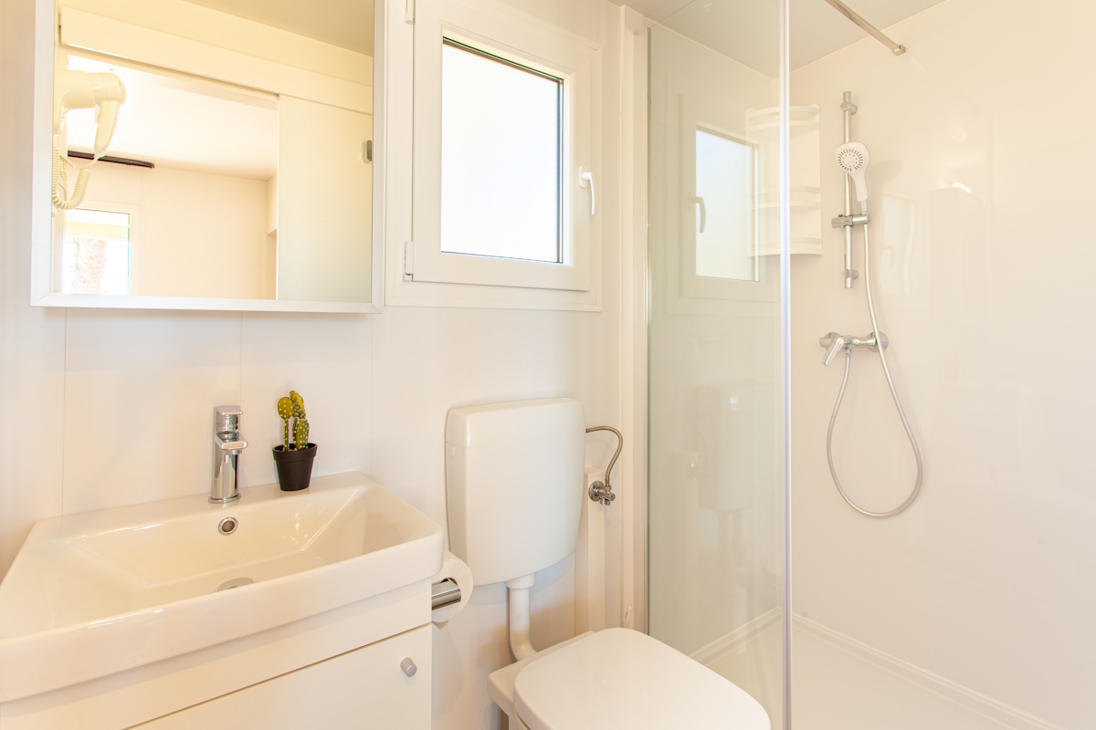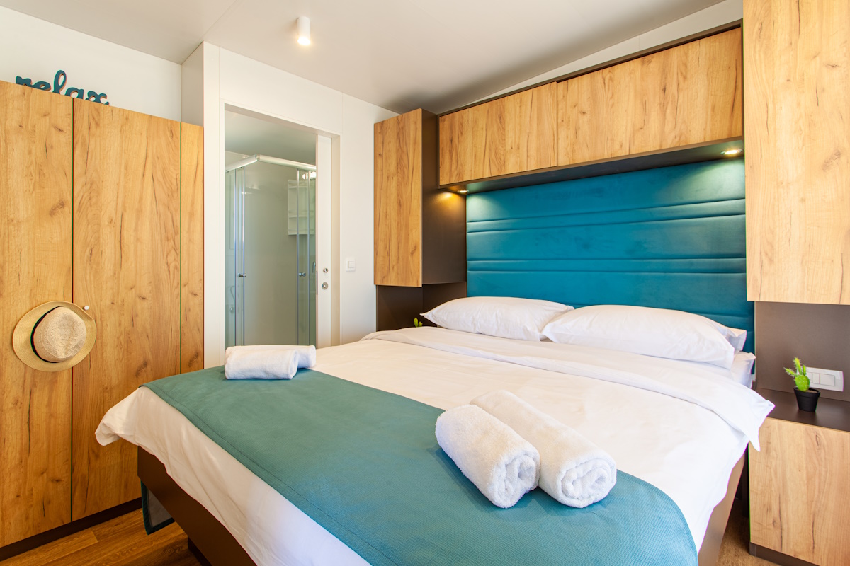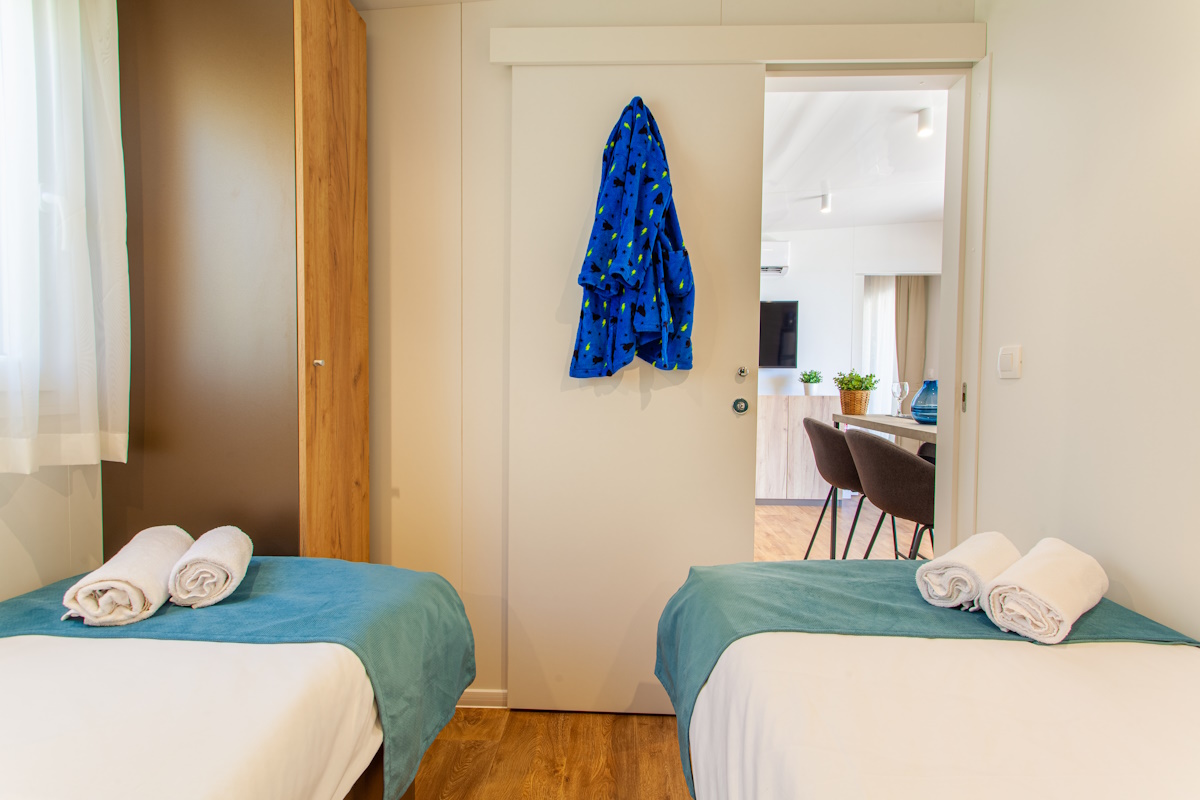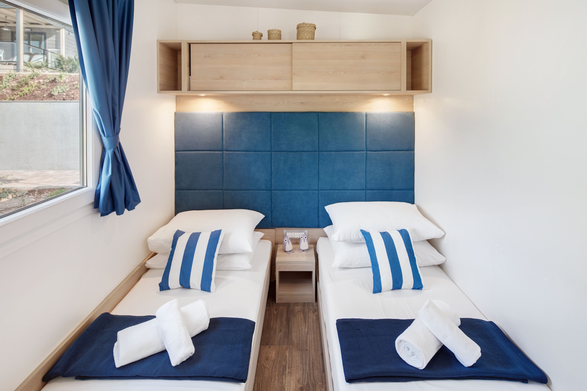 All Luxury homes are equipped with modern furnishing, air condition, 2 bedrooms (1 with a double bed, the other with 2 single beds), living room that has a fold out sofa / double bed and kitchen equipped with a dish washer. All Luxury homes have 2 bathrooms with all facilities that you would expect in a house.